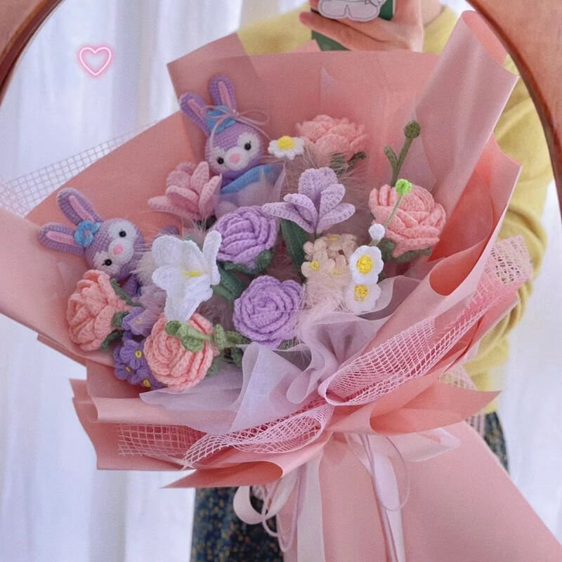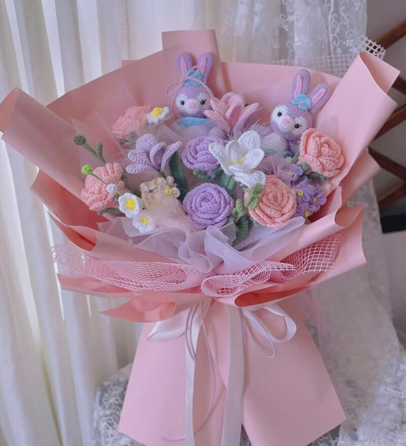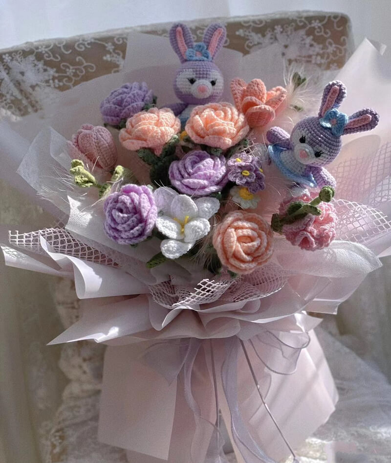 Crochet Flowers Bouquet | Bouquet with Star Dew Rabbit