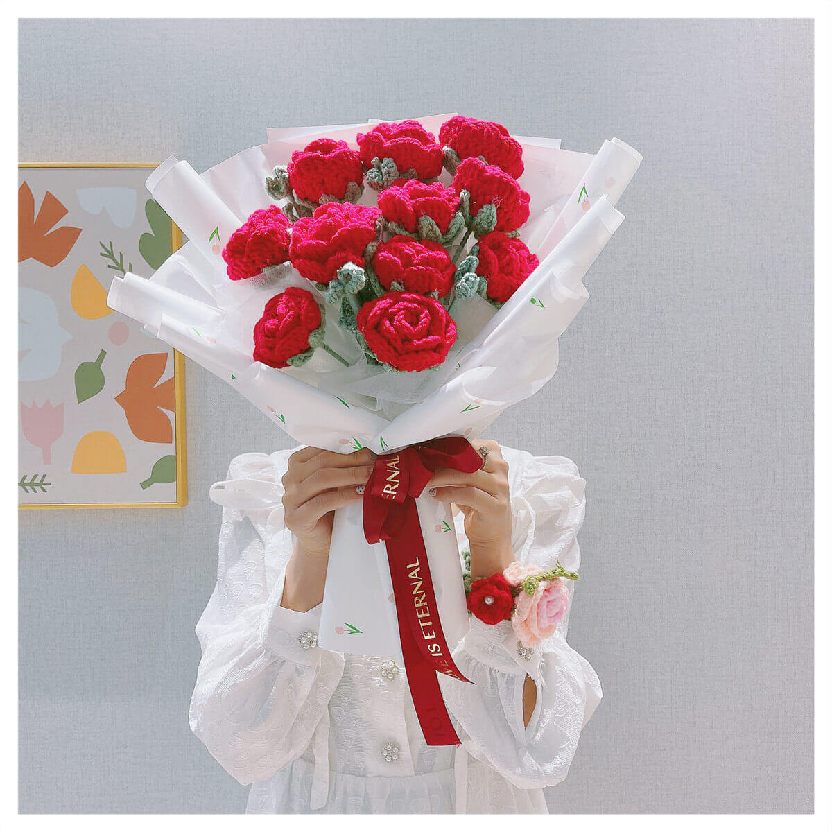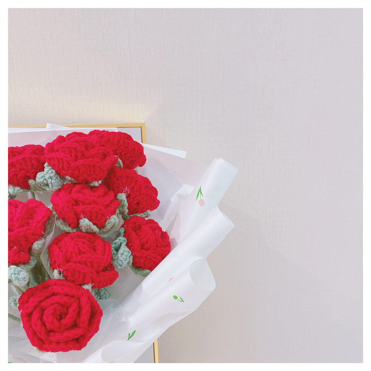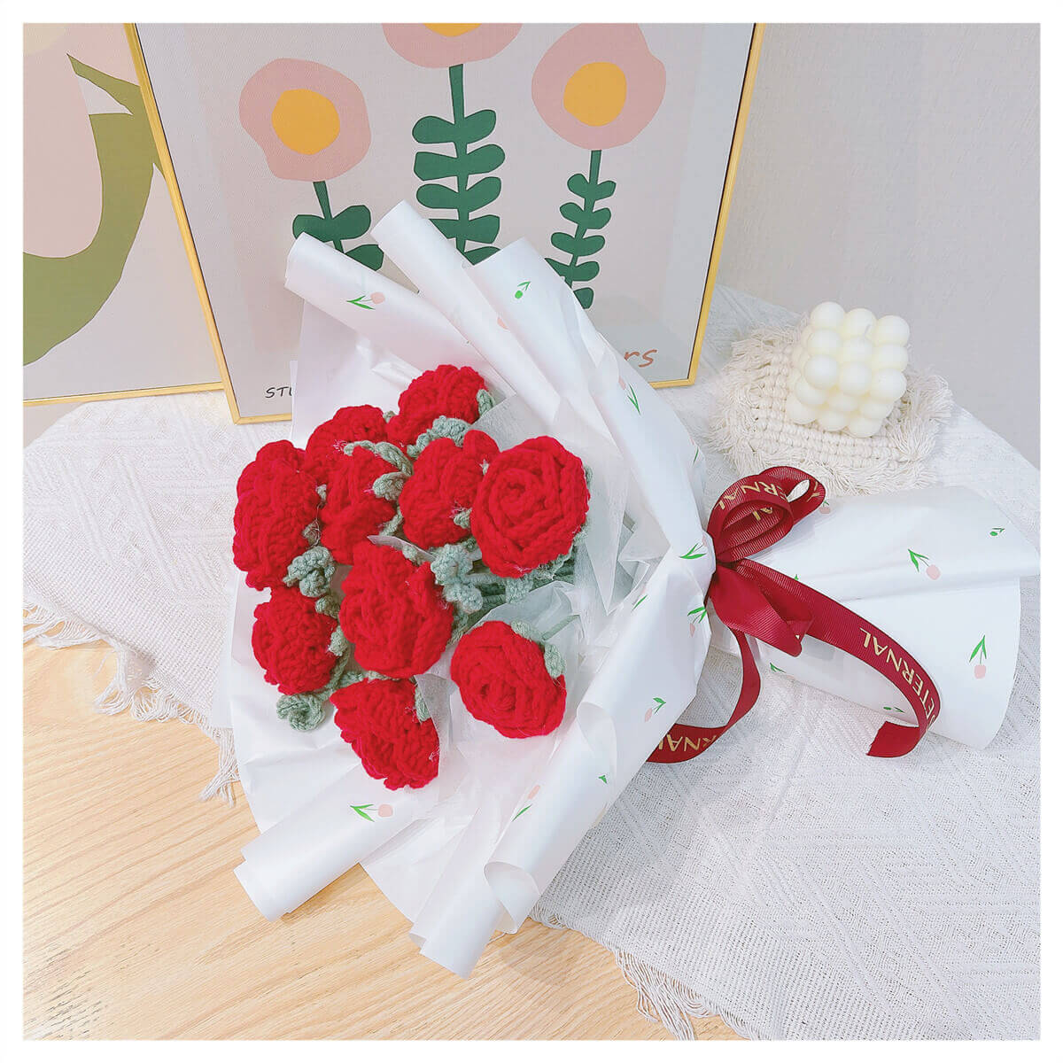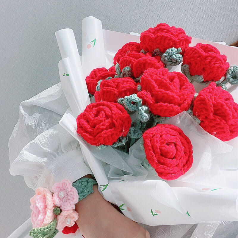 A single red rose hand crocheted.This beautiful rose lasts forever and is hand crocheted.This is a great valentine's keepsake for the one you love .